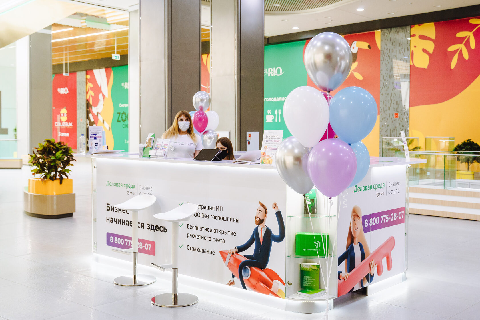 «Если предприниматель уже является предпринимателем, но вдруг его бизнесу необходима какой-то сервис или услуга, то здесь на месте просто гуляя по торговому центру, человек может подойти, получить консультацию по любой услуге Сбербанка, например эквайринг, и в том числе оставить заявку на его установку».